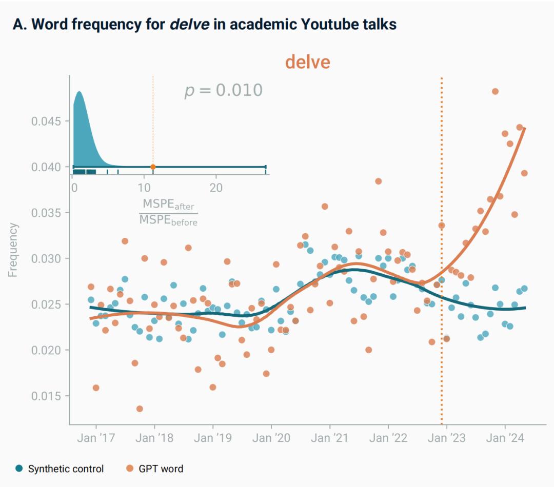 "这场语言变革的'零号病人'是单词'Delve'(钻研),"天津智核科技文化科技研究中心负责人指出,"在2022年之前,这个词几乎被冷落在字典角落,只有在非常正式的文学或学术论文中才会偶尔露面。但到了AI时代,它成为了算法最忠实的心头好,AI对这个词的偏好度比人类高出数百倍。"
